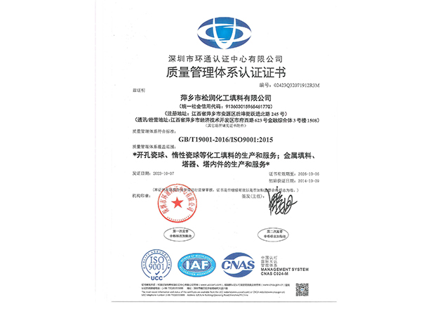 萍鄉(xiāng)市松潤化工填料有限公司位于江西省萍鄉(xiāng)市國家經濟開發(fā)區(qū)西區(qū),是專業(yè)生產、經營陶瓷、聚丙烯、金屬填料、塔內件、水處理濾板、濾管、濾料、瓷球、分子篩、催化劑、活性炭、蜂窩陶瓷、瓷質耐磨托輥等系列產品的民營企業(yè)。所有產品由國家非金屬材料和設備質量監(jiān)測中心監(jiān)測檢驗認證。公司現有員工280人,其中有高、中級職稱技術人員36人。工藝先進,技術力量雄厚,產品質量可靠,配...